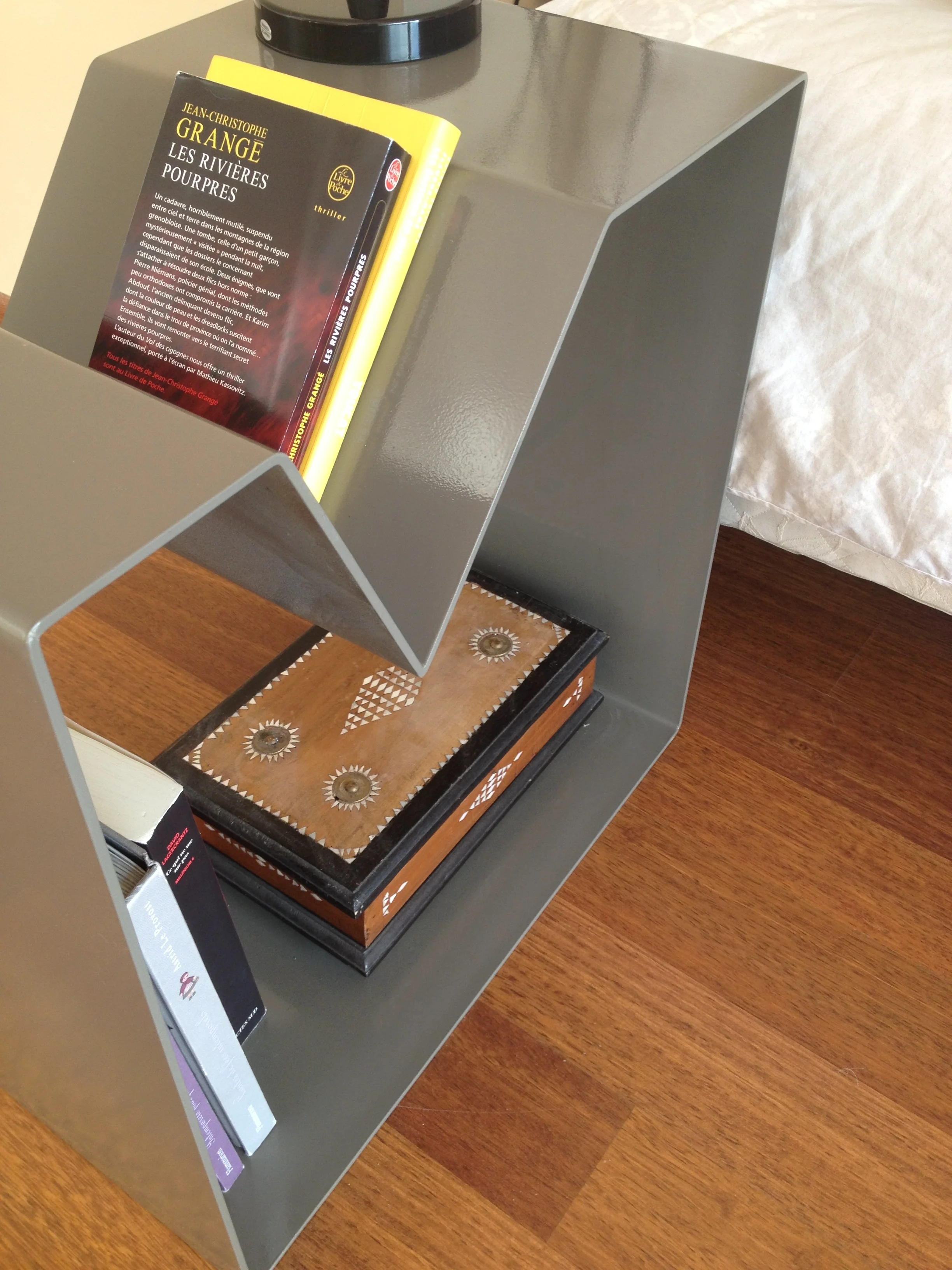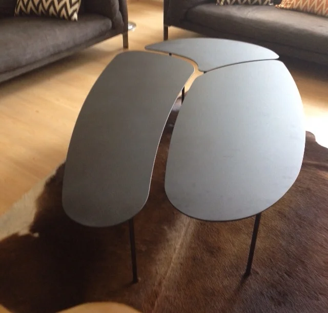 I imagine several types of coffee tables in different materials : wood, metal, copper and tinted glass... each piece is unique ...I drawn and propose to the client a piece of furniture mixing inspiration, efficiency, respect of raw material and creativity.